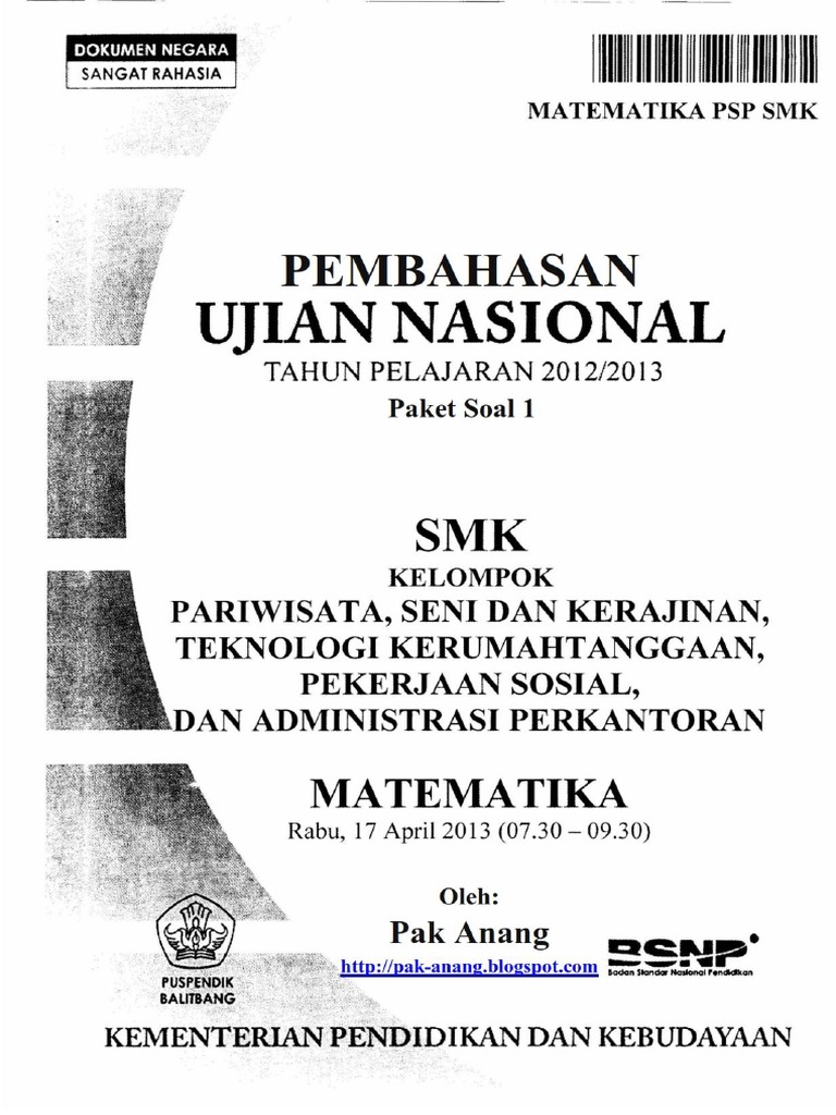 Soal Dan Pembahasan Ujian Nasional Matematika Jurusan Psp