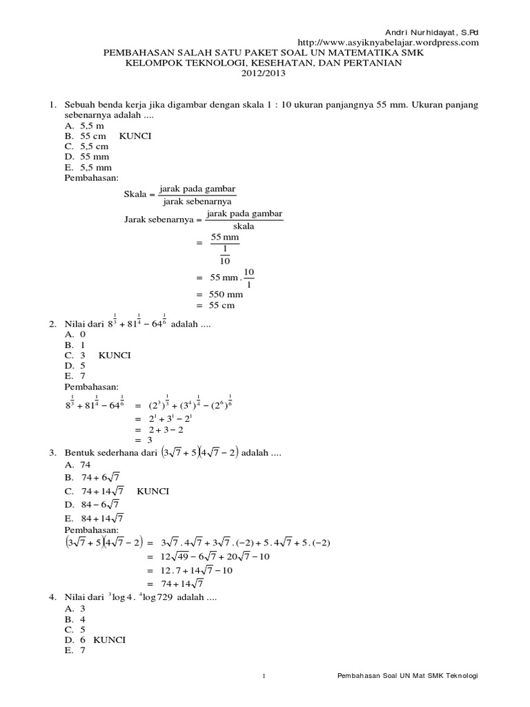 Soal Un Matematika Smk 2013 Blog Urip Guru Kimia