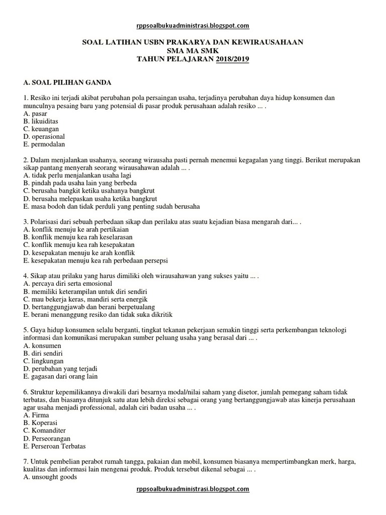 Kisi Kisi Kewirausahaan Usbn Smk Selamet Hariadi
