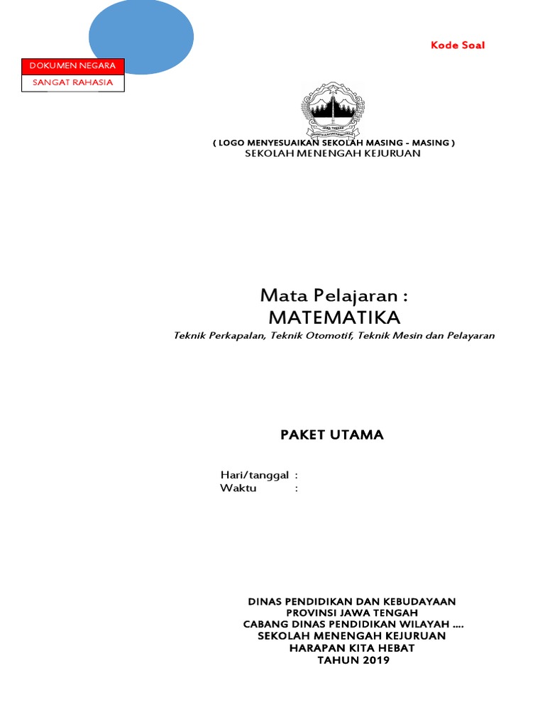 Cover soal usbn. Usbn 2019 semua mapel soal dan pembahasan pdf untuk soal kunci jawaban dan pembahasan yang lain fisika per bab un sbmptn usbn dll bagi pengguna desktop laptopkomputer bisa klik langsung pada menu di atas. Mengacu peraturan bsnp nomor 0047pbsnpxi2018 tentang prosedur operasional standar pos penyelenggaraan ujian nasional tahun pelajaran 20182019 dan memperhatikan masukan dari masyarakat khususnya yang terkait dengan jadwal pelaksanaan ujian nasional smpmts di provinsi. Dokumen negara a 01.