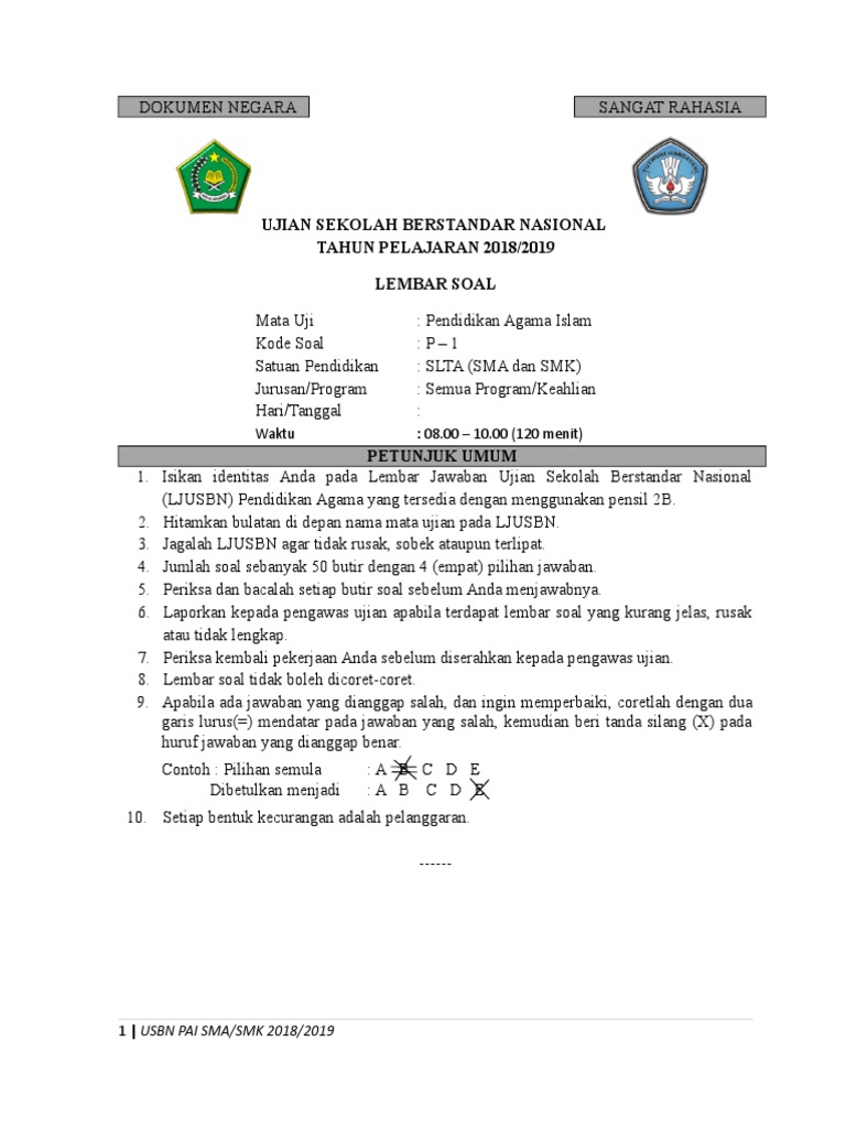Naskah Soal Asli Usbn Sma Pai Tahun 2018