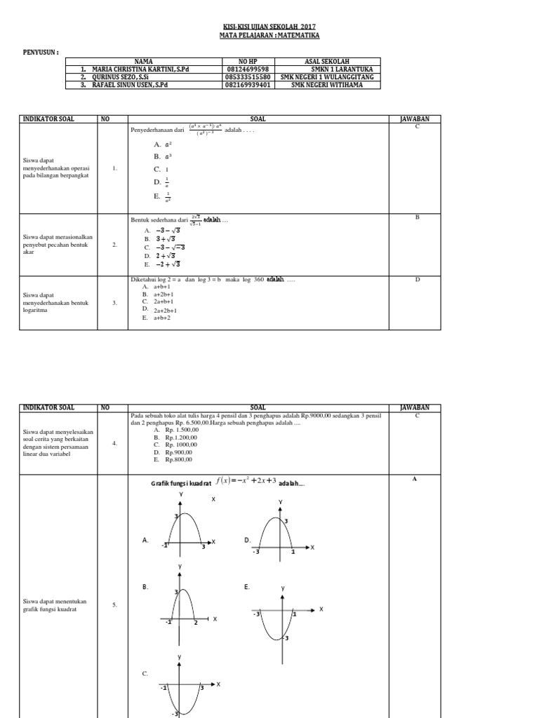 Kisi Kisi Un 2017 Smk Matematika Teknik Kemdikbud Guru