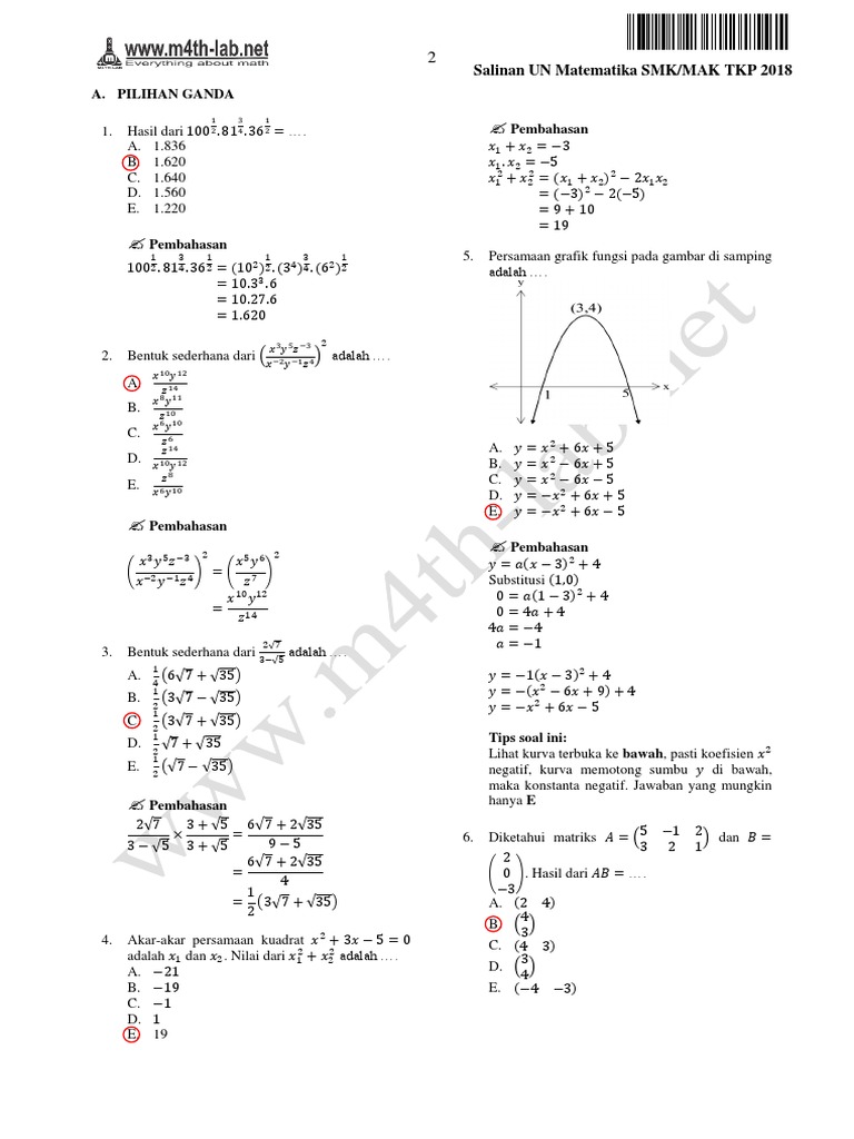 Pembahasan Un 2018 Smk Tkp Www M4th Lab Net Pdf 2