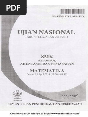 Contoh Soal Un Matematika Smk Kelompok Akuntansi Dan