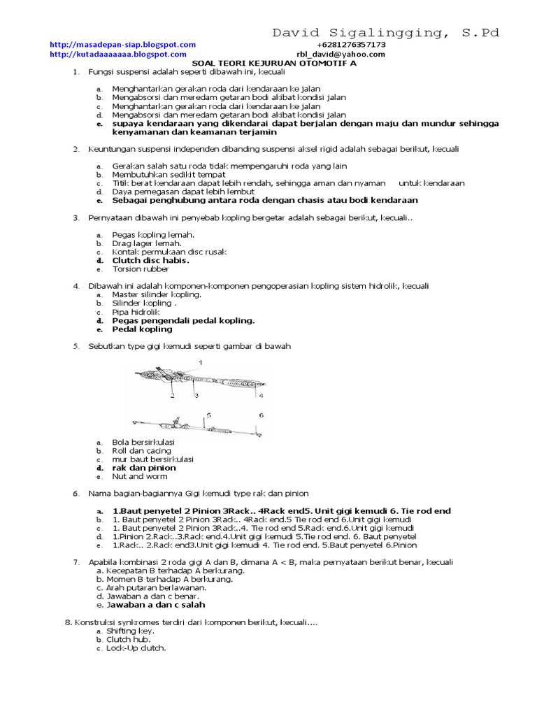 Soal usbn smk teori kejuruan otomotif. Kisi kisi soal ujian teori kejuruan smk lengkap semua jurusan tahun 2019. Informasi mengenai soal usbn teori kejuruan otomotif dan kunci jawaban dapat anda pilih dari daftar bacaan yang ada di bawah ini. Bila dirasa itu kurang tepat dengan soal un teori kejuruan otomotif beserta jawabannya 2017 silakan dapat menggunakan form pencariankami juga berikan anda artikel yang sesuai dengan soal un teori.