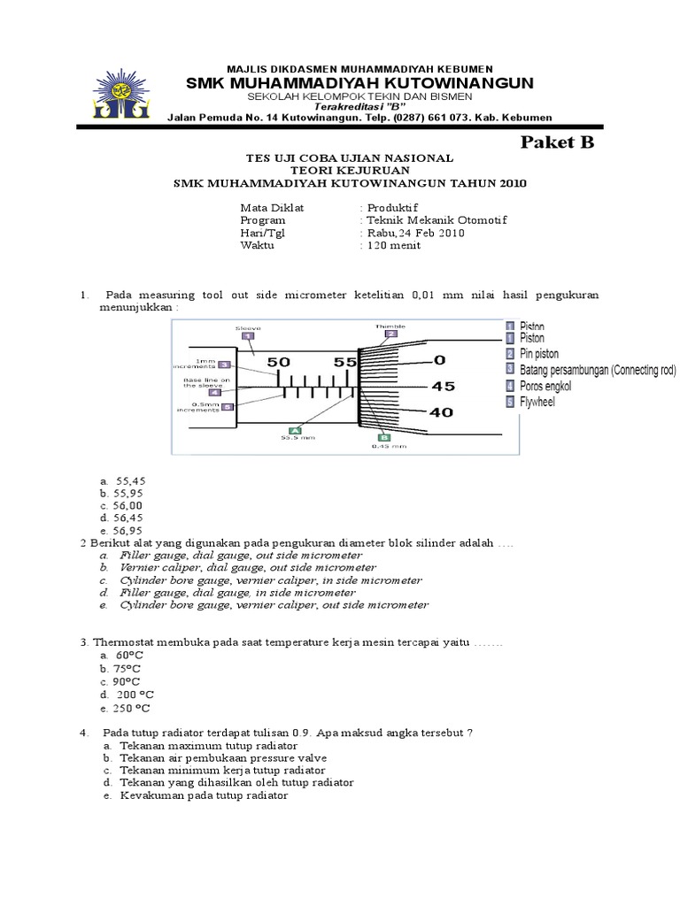 Soal Teori Kejuruan Stk Otomotif Smk Tahun Ajaran 2018
