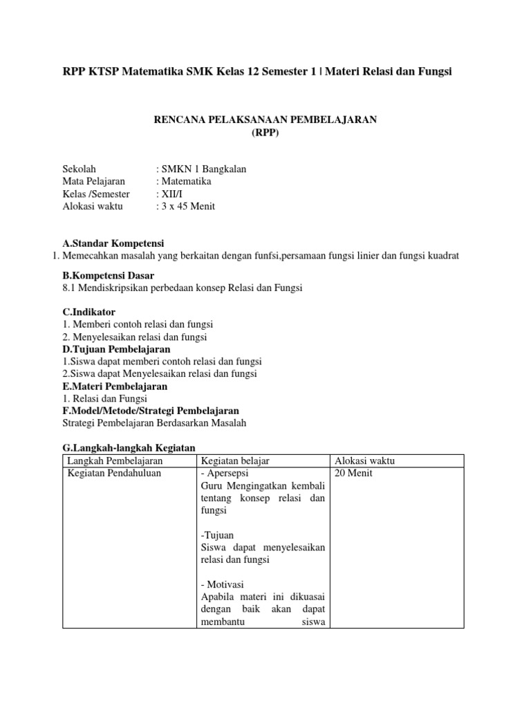 Rpp Ktsp Matematika Smk Kelas 12 Semester 1