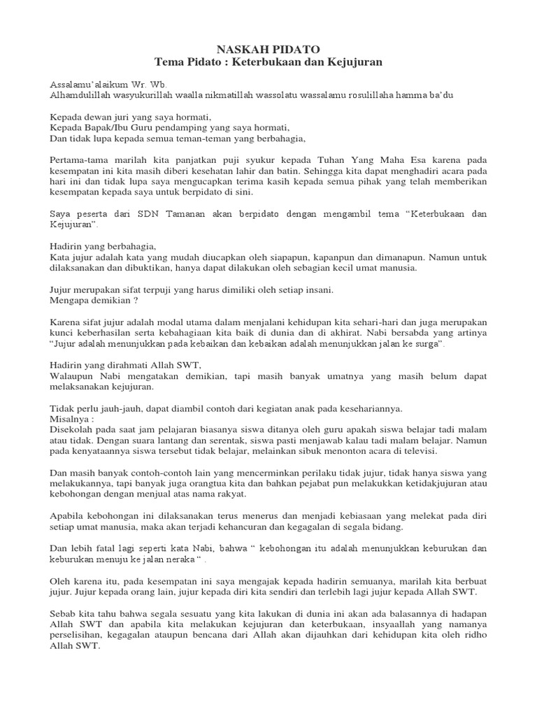 Contoh Naskah Pidato Tema Kejujuran Di Segala Bidang