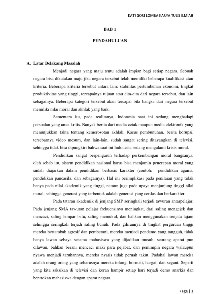 3 Contoh Karya Tulis Ilmiah Tentang Pendidikan Karakter