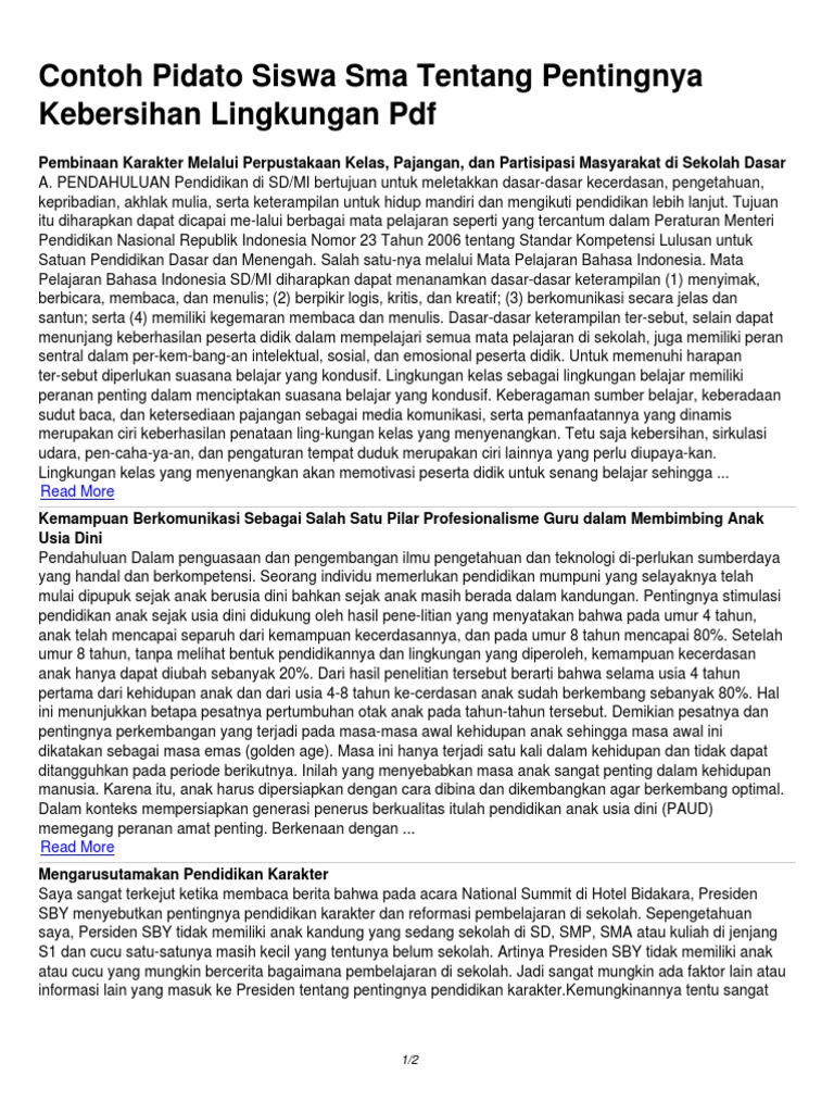 Dalam kesempatan kali ini mamikos akan memberikan contoh naskah pidato tentang kebersihan lingkungan atau contoh pidato tema lingkungan. Selamat datang pengunjung baru dan pengunjung setia pidato id. Pidato tentang kebersihan lingkungan sekolah admin december 4 2016 in bahasa indonesia comments off terdapat beberapa macam pidato berdasarkan isi yang ingin disampaikan oleh pembicara diantaranya ialah pidato politik pidato keagamaan pidato perpisahan pidato kenegaraan pidato kepemudaan dan lain sebagainya.