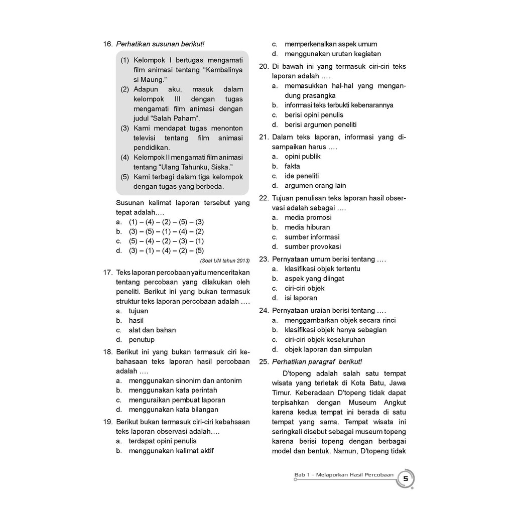 Contoh Soal Materi Teks Laporan Hasil Percobaan Kelas Ix