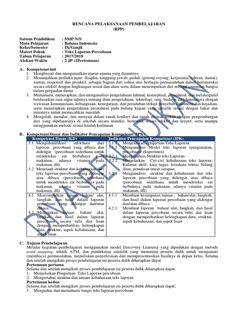 Rpp Revisi 2017 Bahasa Indonesia Kelas 9 Smp