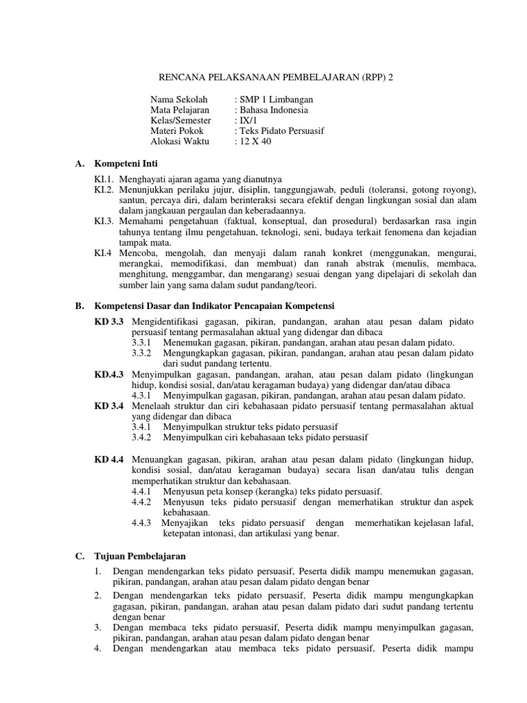 Rpp Bab 2 Pidato Persuasif 3 Docx