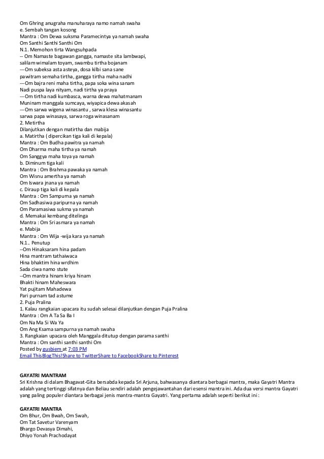 Puja mantradoa kegiatan rutin. Aksara om untuk melakukan setiap aktifitas baik yang rutin maupun tidak rutin ada baiknya kita mempelajari dan melafalkan mantra mantra sesuai dengan fungsinyya. Tangan dicakupkan seperti menyembah diangkat sejajar dada.