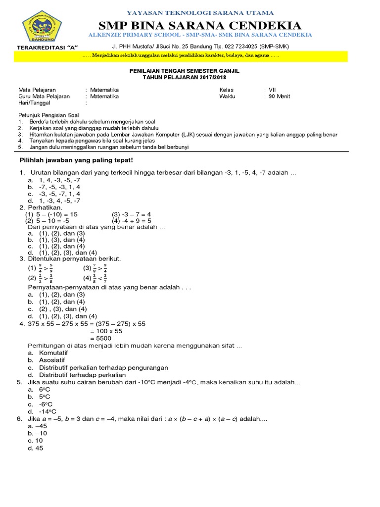 Download Gratis Soal Dan Kunci Jawaban Uts Matematika Smp