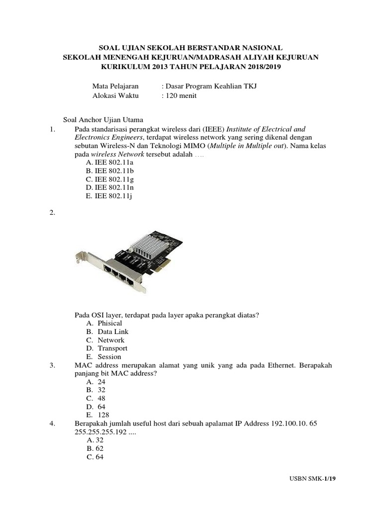 1 Soal Usbn Dasar Keahlian Tkj Docx