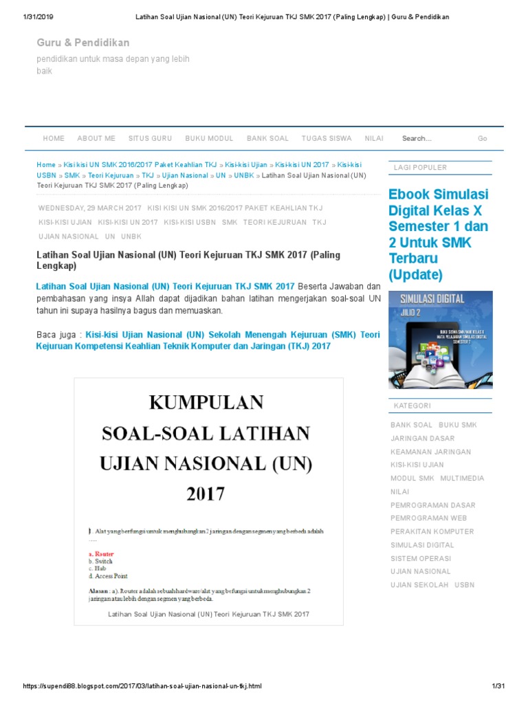 Contoh Soal Usbn Dasar Program Keahlian Tkj Smk Kurikulum