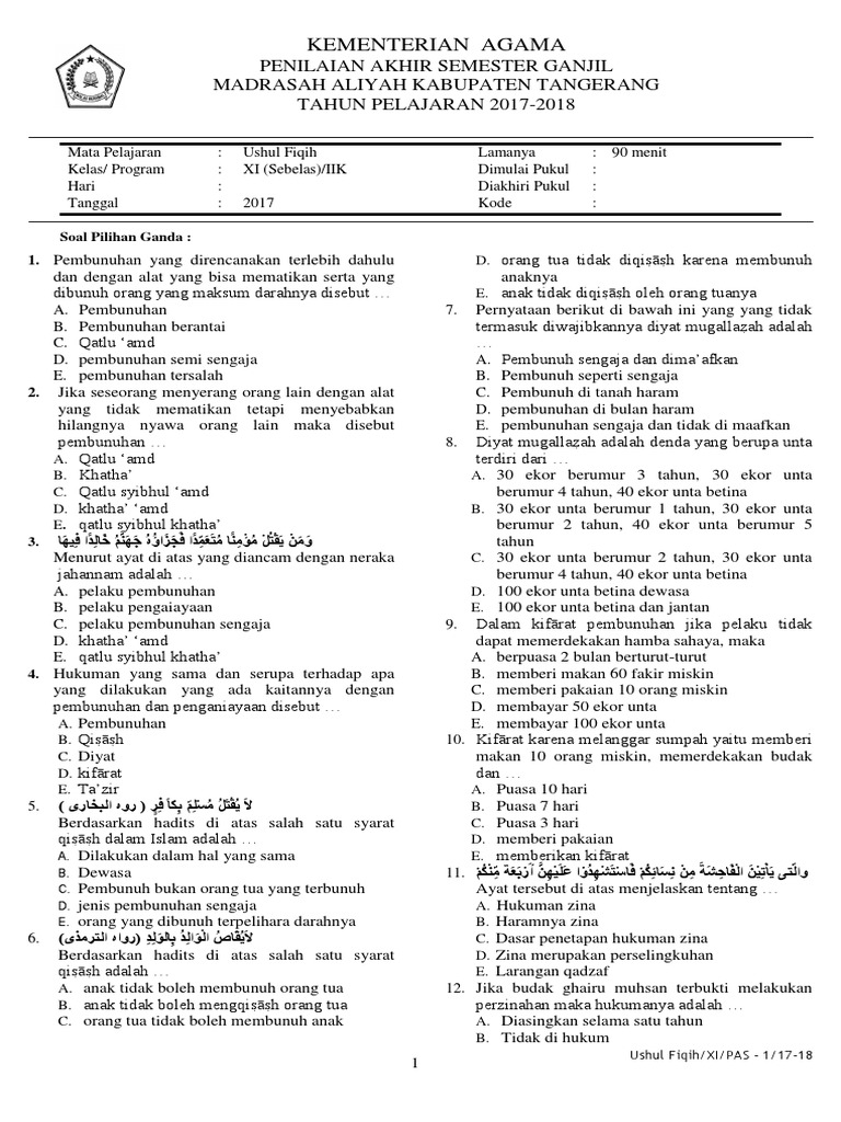 Soal uts ushul fiqih kls x. Contoh soal uambn fiqih mi tahun 20172018 ini merupakan soal yang mungkin sesuai dengan yang anda butuhkan untuk bahan latihan siswa dalam kegiatan pembekalan siswai menjelang pelaksanaan ujian nanti khususnya dalam mengisi soal fiqih.