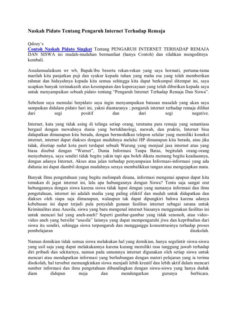 Naskah Pidato Tentang Pengaruh Internet Terhadap Remaja