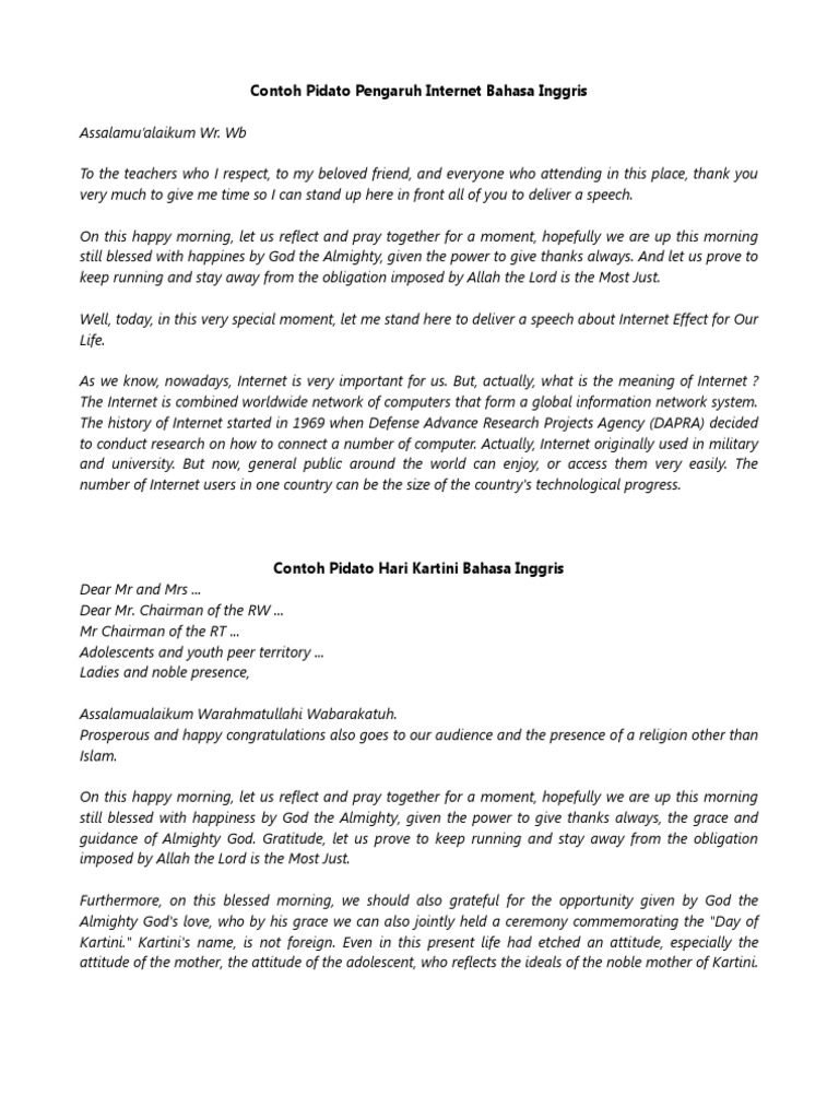 Doc Contoh Naskah Pidato Bahasa Inggris Singkat Sulistiyo