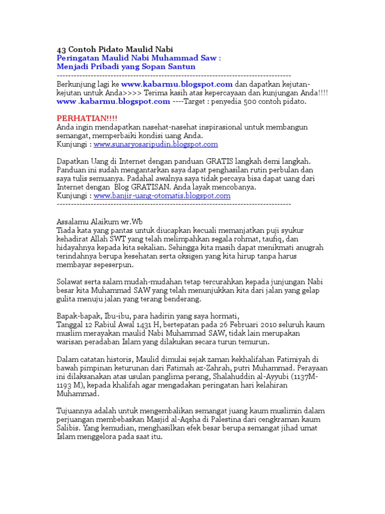Doc Contoh Naskah Pidato Peringatan Maulid Nabi Erti