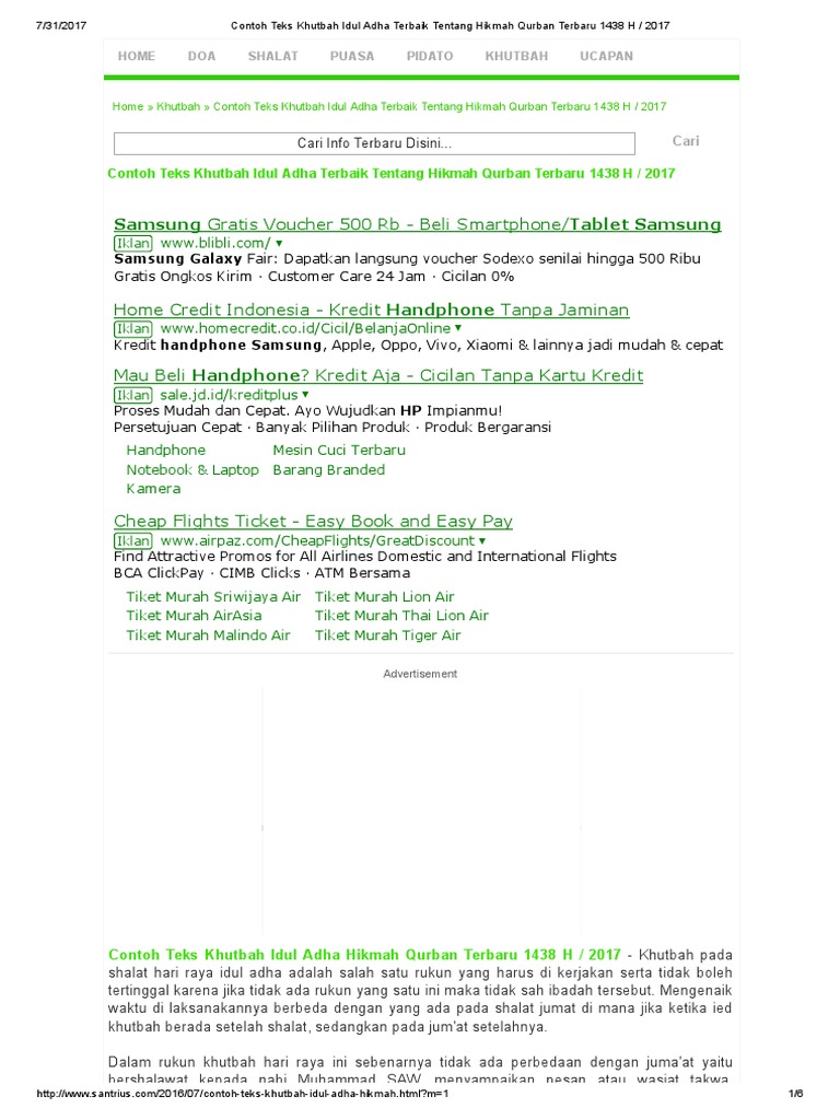 Contoh Khutbah Idul Adha Singkat 2018 Ketisyar