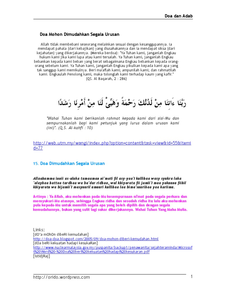 Doa Dimudahkan Urusan Islam World Qur An Doa Dan