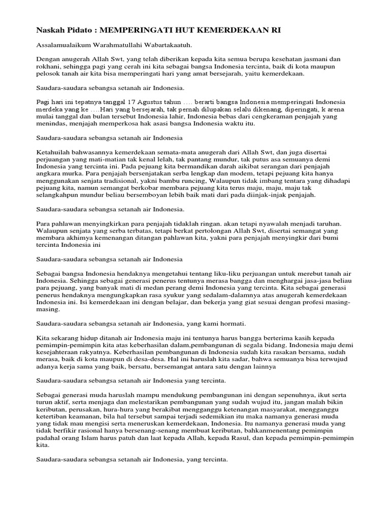 Teks pidato kemerdekaan contoh 1. Bahan pidato 17 agustus di sekolah cara pidato hut ri di perusahaan contoh pidato terbaru untuk agustusan. Yang terhormat bapak.
