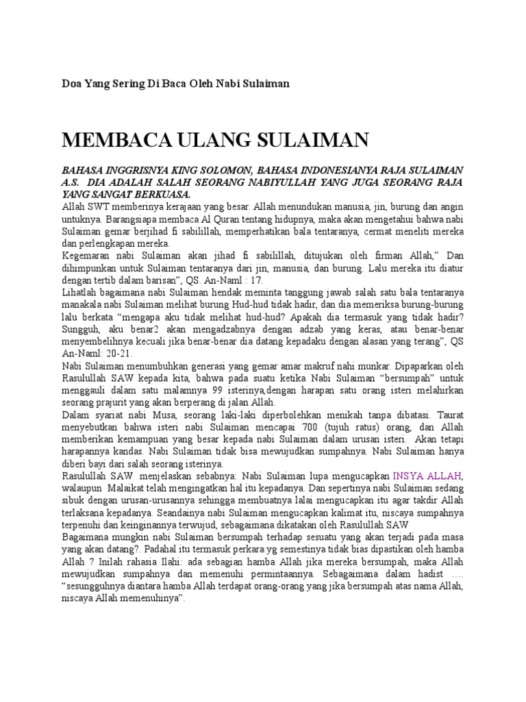 Amalan Doa Nabi Sulaiman Terjemahan Himpunan Doa Dan