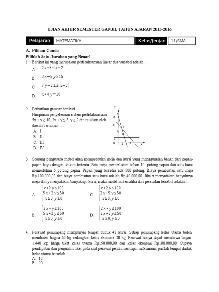 Pdf Ujian Akhir Semester Genap Matematika Kelas Xi