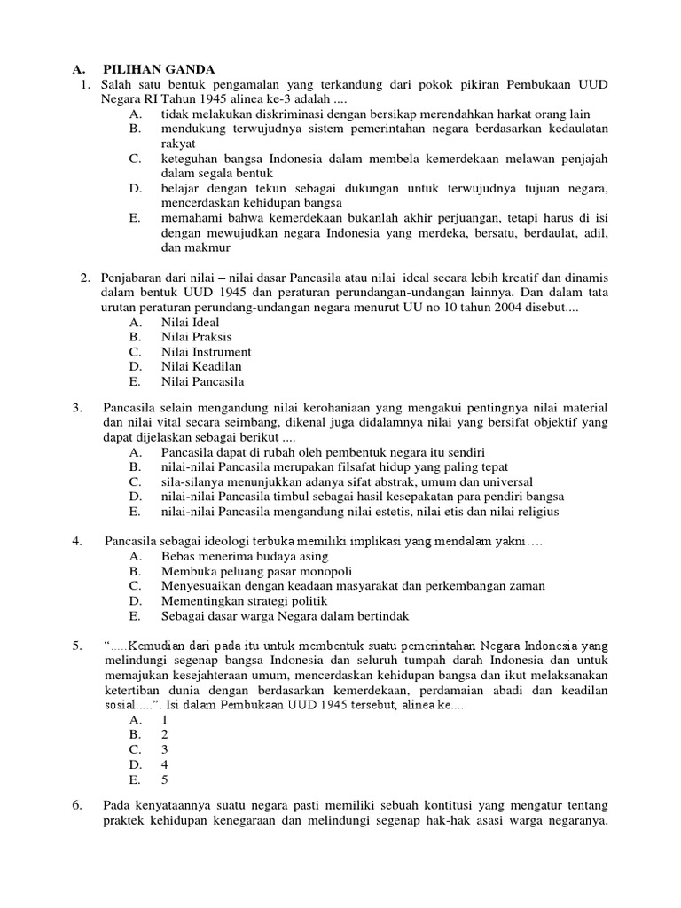 Yukunduhsoalblog assalamualaikum wrwb. Contoh soal prediksi usbn smasmk 2018 ini sangat bagus sebagai bahan latihan usbn tahun pelajaran 2017 2018. Download bank soal pilihan ganda pkn sma kelas xii kurikulum 2013 revisi 2018 pdf.
