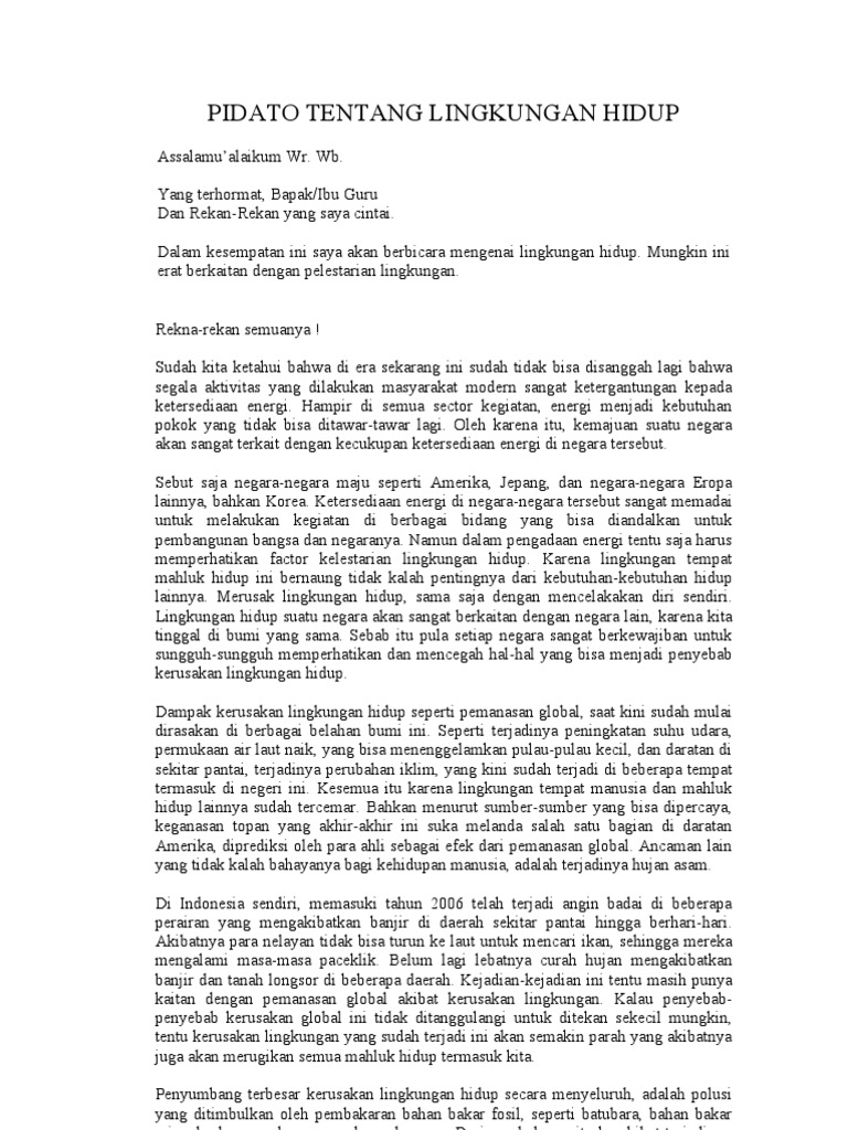 Contoh pidato tentang lingkungan hidup di sekolah. Lan dhumateng rencang sedaya ingkang kulo tresnani. Pertama tama marilah kita panjatkan kehadirat allah swt karena berkah dan karunianya kitasemua dapat berkumpul di pagi yang cerah ini dalam keadaan sehat walafiat. Contoh pidato lingkungan hidup menjaga keberhihan lingkungan assalamualaikum wrwb yth.