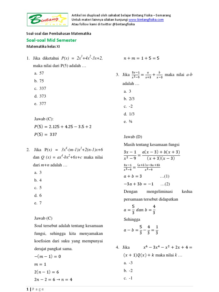 Latihan Soal Dan Pembahasan Mid Semester Matematika